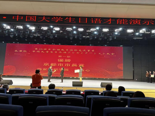 在刚刚落幕的第26届“长安杯·中国大学生日语才能演示大赛”中,西安翻译学院日语专业学子表现卓越,勇创佳绩!颜怡心同学荣获大赛一等奖,汪金俭同学荣获评委特别奖,同时,西安翻译学院再次荣获“最优秀校”荣誉称号,展现了西译学子扎实的日语功底、出色的综合素养与卓越的舞台表现力。