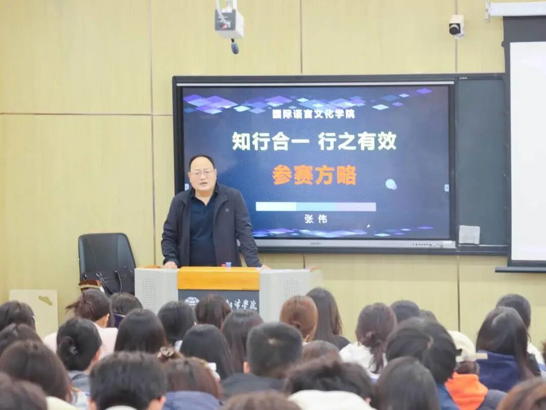 为助力广大学子在创新创业赛事中把握先机,夯实基础,提升综合能力,11月4日晚,国际语言文化学院组织学生参加了以“创新创业与赛事突围能力提升”为主题的专题讲座。本次讲座特邀高校赛事指导专家张伟担任主讲,学院部分学生代表现场聆听学习。