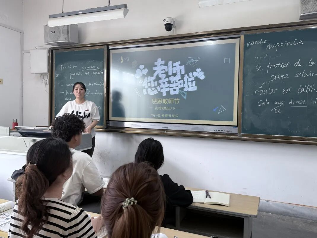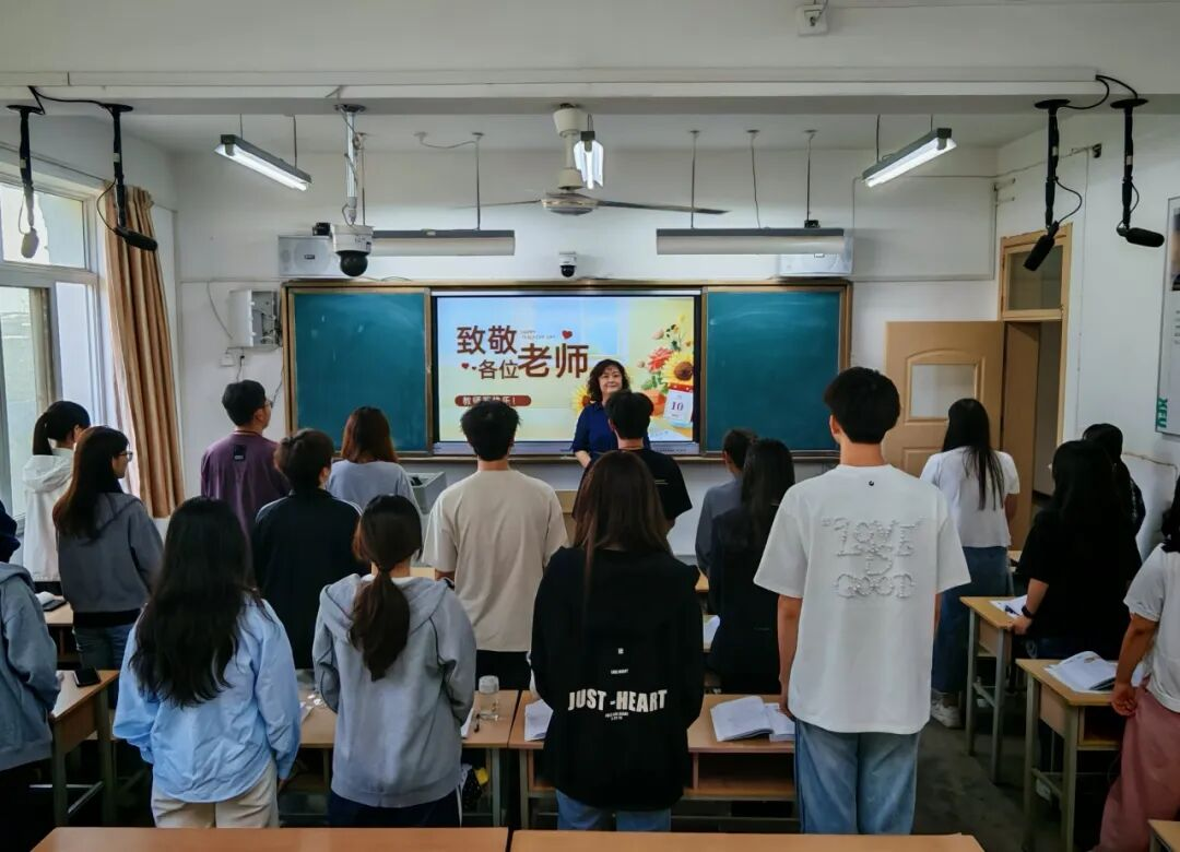 为给教师节增添更多温暖仪式感,课堂上同学们用各自专业语言,向老师们送上最真挚的祝福:这些来自不同班级的温情片段,被精心剪辑成一部微视频,既定格了师生间的暖心瞬间,更将同学们对老师的感恩之情、对师者辛勤付出的认可,化作了教师节里最有温度的致敬。