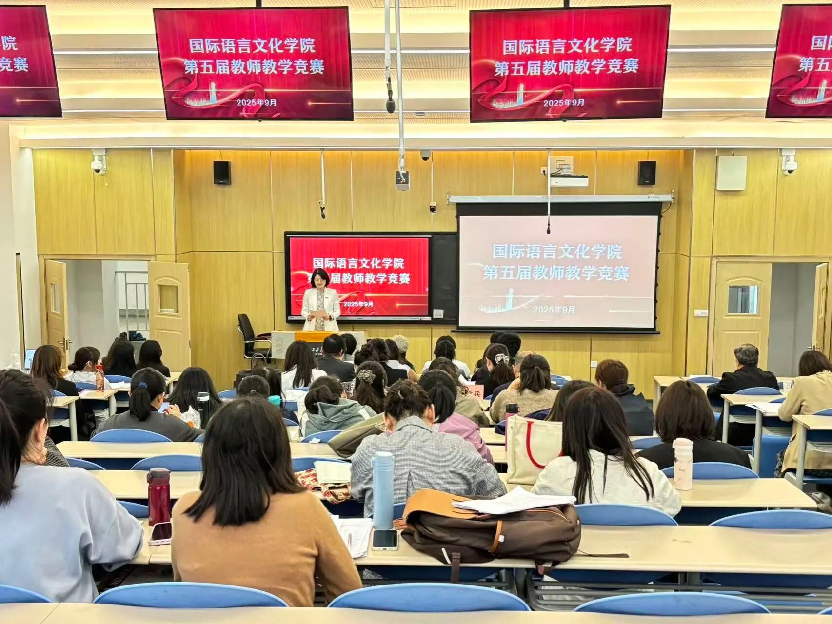 为深入贯彻落实立德树人根本任务,持续推进信息技术与教育教学深度融合,激发课堂教学活力,提升教师教学能力与育人水平,国际语言文化学院于2025年9月25日下午在西区4号教学楼4102T教室成功举办了第五届“教师教学大赛”院级决赛。
