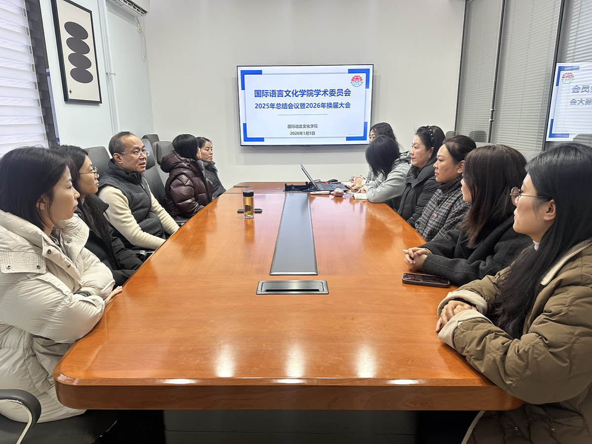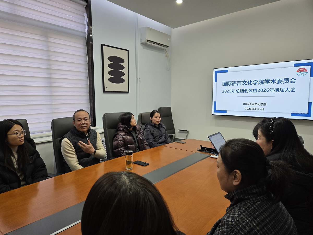 承前启后绘蓝图,砥砺奋进正当时。2026年1月5日上午,国际语言文化学院学术委员会2025年度工作总结大会暨2026年换届选举大会隆重召开。学院学术委员会主任李庆明教授与新一届学术委员会全体委员齐聚一堂,共同回顾过去一年的丰硕成果,擘画未来学术治理与发展的崭新蓝图。