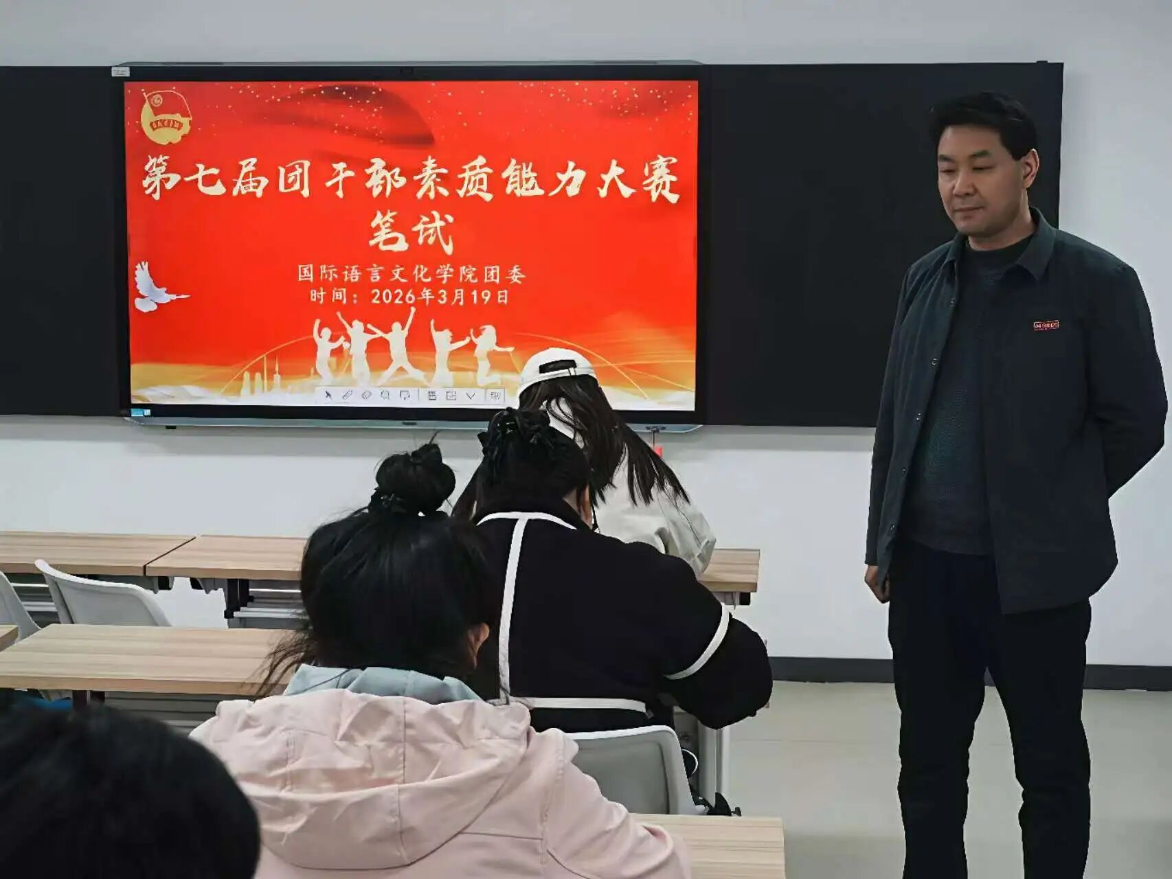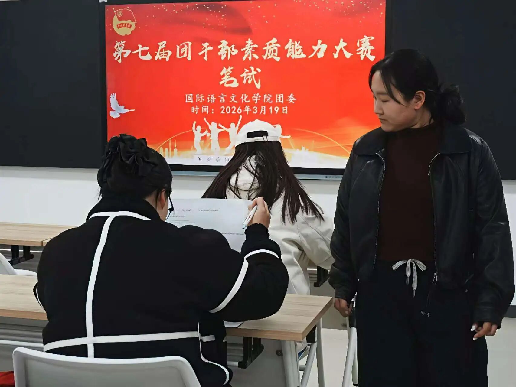 为深入学习贯彻习近平新时代中国特色社会主义思想,深入贯彻党的二十大和二十届历次全会精神,深入贯彻习近平总书记关于青年工作的重要思想,扎实推进学院共青团干部队伍建设,切实提升团干部的理论素养和业务能力,国际语言文化学院团委于3月19日下午,在3119教室成功举办了第七届团干部素质能力大赛笔试环节。